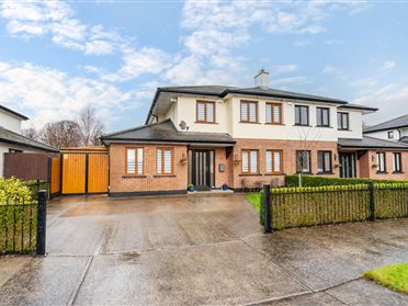 The accommodation, which is bright and spacious and well laid out, consists of entrance hallway, dining room, sitting room, kitchen/breakfast room, garage conversion, 4 double bedrooms with master en-suite and family bathroom. All amenities are located close by including a large selection of multinational supermarkets including Lidl, Aldi, Tesco, Mark & Spencers and Dunnes Stores. Home to the Newbridge Silverware showrooms, the Courtyard Shopping Centre and the famous Whitewater Shopping Centre including the major shopping chains: Marks and Spencer, TK Maxx, Penneys, Boots, Zara and many more including several restaurants and cinema. Newbridge has an excellent supply of good schools including Newbridge College, The Holy Family, Educate Together and Gaelscoil. Direct access to the M7/M9 motorway is just a c.4 minute drive away along with frequent train service to the city.
