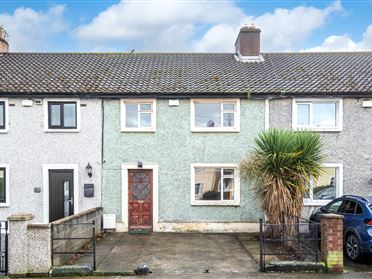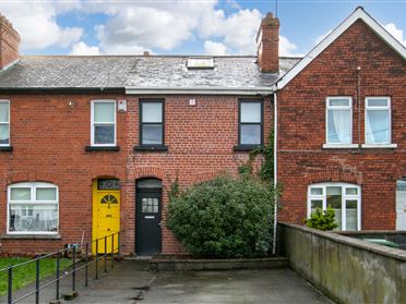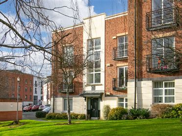 Hall Hot press, Storage. Living Room Mantlepiece, Open fire. Fitted shelving. Timber flooring. Kitchen Tiled floor, Range of fitted units, Sink unit. Motion sensor lighting. Plumbed for washing machine. Bedroom 1 Fitted wardrobe. Bedroom 2 Fitted wardrobe. Bedroom 3 Fitted wardrobe. Bathroom Bath, Shower with telephone shower attachment. W.C., whb, medicine cabinet, Part-tiled. Tiled floor. Outside Parking, Bike storage, Large communal gardens.