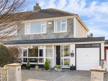 Entrance Hall: Under stairs storage, dado rail, coving. Living Room: Gas coal effect fire with stone surround, fitted cabinets, coving. Dining Room: Coving. Kitchen/Breakfast Room: Fitted wall and base units, pantry storage, door to rear garden. First Floor: Landing: Door to hot press with shelving, access to attic, dado rail, coving. Bedroom 1: Extensive fitted wardrobes and storage, vanity area. Bedroom 2: Fitted wardrobes Bedroom 3: Fitted wardrobe. Bathroom: Shower, w.c., w.h.b., coving. Exterior Rear: South facing with newly laid lawn, block shed, side access. Front: Off street parking, newly laid lawn, side access.
