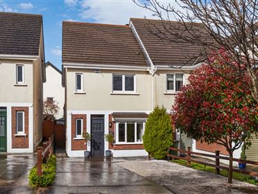 Briefly the accommodation comprises of an entrance hallway with access to the large hotpress. To the right is the expansive living / dining room with a bay window looking out to the front and an adjoining kitchen with fitted eye and floor level shaker-style timber cabinets. Left off the hallway are two double bedrooms, one with ensuite shower room, with the main bathroom completing the accommodation. All rooms are carpeted other than the kitchen and bathrooms which have tiled flooring.