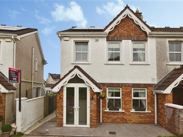 Accommodation consists of the following: Entrance / Hallway PVC front door leading to hallway with terracotta floor tiles, recessed lighting, radiator, understairs storage. Living Room (4.20m x 2.14m) Solid pine wood floor, cast iron solid fuel fireplace with wooden mantle over and black granite hart, radiator, centre light, window with window blind, curtain and curtain pole facing front of property, double doors leading to family room. Family Room (3.92m x 3.68m Semi-solid oak wood floor, cast iron solid fuel fireplace with white marble surround and black granite hart, centre light, French doors leading to patio and gardens to rear. Dining Room (3.96m x 2.91m) Semi-solid oak wood floor, radiator, centre light, double doors leading to patio and gardens to rear. Kitchen (7.39m x 2.42m) Tiled floor, shaker style integrated kitchen units at floor and eye level, plumbed for dishwasher and washing machine, radiator, electric double oven, recessed lighting, dual aspect windows facing front and rear of property with window blinds. Stairs / Landing Fully carpeted, centre light, window facing side of property. Bedroom 1 (3.80m x 3.81m) Laminate wood floor, extensive fitted wardrobes, radiator, centre light, window with window blind, curtain and curtain pole facing rear of property. Bedroom 2 (3.18m x 3.18m) Laminate wood floor, wall to wall fitted wardrobes, radiator, centre light, window curtain and curtain pole facing front of property. Bedroom 3 (3.10m x 1.72m) Laminate wood floor, built-in wardrobes, radiator, centre light, window facing front of property. Bathroom (2.41m x 1.67m) WC, WHB, bath with electric shower and shower door over, fully tiled walls and floor, radiator, centre light, window with frosted glass and window blind facing rear of property. Converted Attic for storage purposes (3.77m x 3.27m) Carpet floor covering, radiator, recessed lighting, velux windows facing front and rear of property. En-Suite (2.50m x 0.92m) WC, WHB, electric shower, fully tiled walls, radiator, centre light, expelair. Outside To the front - gated off street parking and gardens laid to lawn with mature hedge boarder. To the rear - maintenance free patio areas with detached storage / home office room (4.12m x 3.20m).