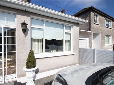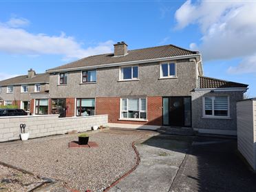 For Sale by Private Treaty. Dennehy Auctioneers are pleased to offer exceptionally spacious, well cared for three bedroom, semi-detached residence located in highly desirable, most convenient location just a 2 minute walk from primary school and 10 minute walk from Carrigaline town centre. This property boasts an unusually large rear garden and is an absolute must see property. Accommodation comprises of front porch, reception hall, sitting room, guest w.c., kitchen/dining room. First floor with three bedrooms, master ensuite and bathroom. Solid teak six panel front door with double glazed side panel to reception hall. Spacious reception hall with tiled floor. Storage area under stairs. Guest W.C. off. Guest W.C. with white suite of toilet, wash hand basin and pedestal. Window. Sitting Room: 5 m x 5.3 m Carpeted. Bay window. Open fireplace with granite surround and granite hearth. Kitchen/Dining Room: 5.33 m x 4 m Vinyl flooring. Pine style fitted kitchen with large array of base and wall mounted units. Fridge-freezer, dish washer, washing machine and cooker included. Single drainer stainless steel sink. Good array of wall mounted units with integrated extractor hood. Double glazed white aluminium sliding door to rear patio and large garden. Carpeted stairs to first floor with pine banister, spindles and newel post. Spacious landing with pine balustrade. Window. Generous hot press with factory insulated copper cylinder and dual immersion. Stira pull down ladder to attic storage. Bedroom One: 3.46 m x 3.84 m Pine varnished flooring. Ensuite off. Ensuite with white suite of toilet, wash hand basin and pedestal. Shower enclosure with tiled walls and electric shower unit. Curtain rail and shower curtain. Bedroom Two: 3 m x 4.2 m Pine varnished flooring. Bedroom Three: 3.1 m x 2.4 m Pine varnished flooring. Bathroom with white suite of toilet, wash hand basin and pedestal. Bath with tiled surround and electric shower unit over. Outside: Flagstone patio. Extensive lawn. Wooden garden shed. Side access to front garden. Cobble lock paved front driveway suitable for parking two cars, side by side. Services: Mains water, mains sewer, natural gas central heating. Title: Freehold Sale includes: Carpets, curtains, blinds, light fittings, fridge-freezer, dish washer, washing machine, cooker and wooden garden shed.