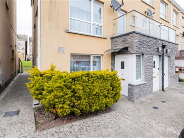 Entrance Hall - with laminate wood flooring and hot-press storage. Living area - with laminate wood flooring, TV points, spacious living area, french door access to false balcony Kitchen - with tiled floor flooring, good range of built-in kitchen units and worktops, tiled splashback, plumbed for washing machine and dishwasher. Bedroom One - with laminate flooring, double bedroom with built in wardrobes and TV point, door to ensuite with wc, whb and shower unit. Bedroom Two - laminate wood flooring, double bedroom with built in wardrobes. Bathroom - with w.c, w.h.b., bath with shower above, fully tiled throughout