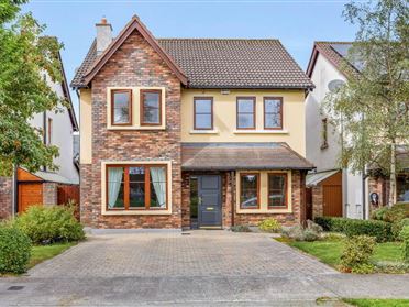 Grimes are delighted to present this superb four bedroom, double fronted detached family home to the market, ideally located in the ever popular Deerpark development in Ashbourne. This spacious and well maintained home offers generous living space throughout and is perfect for modern family life. The accommodation comprises a large front living room with picture window and stove fireplace, a bright open plan kitchen/dining area with modern fitted units, a utility room, guest wc, and a second reception room / playroom to the front ideal for a home office or children`s space. Upstairs, there are four well proportioned bedrooms, all with laminate wood flooring. The master bedroom benefits from a fully tiled ensuite, while the family bathroom features a large corner bath and separate walk-in electric shower. Externally, the property boasts a south facing rear garden, large side entrance, ample off-street parking, and a concrete block shed for additional storage. The home is heated by oil fired central heating and double glazed throughout. Located within walking distance of Ashbourne Town Centre, Deerpark is close to schools, shops, restaurants, gyms, parks, and excellent public transport links to Dublin City Centre and the airport. The M2 and M50 are just minutes away by car. Early viewing is highly recommended. Entrance Hallway - 4.43m (14'6) x 0.96m (3'2) Laminate wood floor, dado rail. Guest W.C. - 1.79m (5'10) x 0.74m (2'5) Comprising w.c. w.h.b. with Vanity Unit. Tiled floor. Lounge - 5.08m (16'8) x 3.61m (11'10) Laminate wood floor, ceiling coving, picture window, feature fireplace with stove fire. Kitchen - 4.42m (14'6) x 2.09m (6'10) Range of floor eye level fitted press units. Integrated fridge freezer, dishwasher, single oven, microwave, electric hob extractor fan. Downlights. Ceiling coving. Tiled floor. Dining Room - 4.13m (13'7) x 2.94m (9'8) Tiled floor. Ceiling coving. Sliding doors to rear garden. Utility - 1.68m (5'6) x 1.81m (5'11) Tiled floor. Plumbed for washing machine. Family Room - 3.69m (12'1) x 2.98m (9'9) Solid wood floor, bay window. ceiling coving. Landing - 3.68m (12'1) x 1.22m (4'0) Carpet floor, hotpress. Bedroom 1 - 4.14m (13'7) x 4.07m (13'4) To front of house with laminate wood floor built in wardrobes. Ensuite - 2.52m (8'3) x 1.03m (3'5) Fully tiled with w.c. w.h.b. power shower. Bedroom 2 - 3.26m (10'8) x 3.01m (9'11) To front of house with laminate wood floor built in wardrobes. Bedroom 3 - 3.44m (11'3) x 2m (6'7) To rear of house with laminate wood floor. Bedroom 4 - 2.93m (9'7) x 1.74m (5'9) To rear of house with laminate wood floor. Main Bathroom - 3.04m (10'0) x 2.74m (9'0) Comprising w.c., w.h.b., corner bath. Separate shower cubicle with electric shower, Tiled floor partially tiled walls. Notice Please note we have not tested any apparatus, fixtures, fittings, or services. Interested parties must undertake their own investigation into the working order of these items. All measurements are approximate and photographs provided for guidance only.