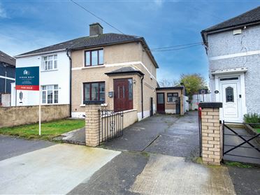 Aidan Daly Auctioneers..... are delighted to welcome you to No. 81, Coolgreena Road, Beaumont, Dublin 9. Wonderfully positioned and beautifully maintained with great attention to detail, this impressive cleverly designed extended 2-bedroom semi-detached family home (125.9sq.m./1356 sq. ft.) has the added advantage of having a large private rear garden which makes it a gardener’s paradise or simply great for children. Concrete built work shed/storage area attached at side with door access from front .This property is nestled on one of Beaumont's most convenient and quiet mature roads where you can enjoy every conceivable amenity on your doorstep. Within walking distance of Beaumont Village (700 yards.), Collins Avenue, Beaumont Hospital, Swords Road ( Airport Road) and DCU campus. The M1/M50, Dublin Airport, and city centre are easily accessible. There is a wide selection of creches, pre-schools, primary and secondary schools to choose from. There are a wealth of sporting clubs and social amenities within this area. Many expensive features have been added e.g. extra smoke/carbon monoxide alarms, fitted wardrobes in bedrooms, feature wooden flooring & ceramics throughout, fully tiled ensuite in main bedroom, extended storm porch fully insulated, sensor approach lighting in rear garden with surround security cameras & doorbell camera, impressive patio with Indian sandstone paving ,private large rear garden which is not overlooked, all white goods in kitchen cooker/oven, dishwasher etc.& shutters/plantation blinds included, new gas boiler (2025). The accommodation comprises of a bright well-constructed storm porch(insulated) and well-appointed entrance hall, spacious lounge with connecting doors to superbly fitted open plan kitchen/dining room/breakfast room with two sets of double glazed upvc French doors to sunny rear garden. Downstairs w/c with ceramic wall & floor tiling. Utility room with shelving.Two generous sized bedrooms with built in wardrobes and main bedroom en suite. Bathroom with bath and walk in shower (ceramic wall & floor tiling). Gas fired radiator central heating ( new boiler 2025). Double glazed UPVC windows and doors throughout. Coble lock drive in. No. 81 is a warm house in winter due to its ideal position regarding direct sunlight and recently added insulation. Solidly built house offering great living space. All in all, No.81 is the perfect purchase for those seeking the comfort of modern living in a convenient, quiet, mature and much sought after location. Viewing highly recommended.