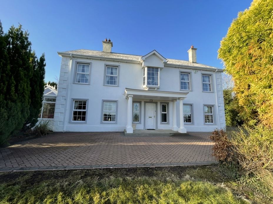 Wooden floor, Bay window to front with views of Lough Alaan and local golf course, Dado rail, Ceiling rose & cornicing, Polished brass & clear crystal chandelier