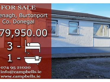 Campbells are Delighted to Present this Lovingly Maintained Detached 3 Bedroom Property located in Dore, Bun Beag, County Donegal. This Property is an Ideal Family / Holiday Home, offering something for everyone. With its Convenient Location, it is just a Short Distance from Local Amenities and Beautiful Beaches, allowing you to fully enjoy all the area has to offer. The Accommodation comprises of an Open Plan Living / Kitchen / Dining Room. The Living Area features a Solid Fuel Stove, adding Warmth and Cosiness to the space, while the Kitchen is Fully Fitted. There are Three Generously Sized Bedrooms and One Modern Bathroom. To the Rear, the Property benefits from a Bright and Spacious Enclosed Courtyard, Fully Paved for Ease of Maintenance and enjoying Excellent Privacy. This Versatile Outdoor Area is Ideal for Summer Barbecues, Entertaining Guests or simply Relaxing in a Sheltered Setting. There is also a Wooden Shed lending itself to Various Uses, along with an Electric Vehicle Charge Point. The Property further benefits from a Well Maintained Garden. Viewing by STRICT Appointment with Campbells. Our Ref: K1189