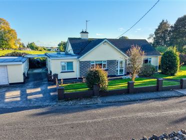 Interested in this property? Sign up for mySherryFitz to arrange your viewing, see current offers or make your own offer. Register now at SherryFitz.ie 4 / 5 Bedroom Dormer Bungalow of c. 194 sqm on c. 0.59 acres of mature gardens. 4 km from Longford Town Centre an just off the N4 Dublin Road. The house was originally built in 1960's and was extended and renovated in 2004. The house features a spacious bright sitting room with open fireplace and dual aspect windows. There are 9 ft ceilings (2.8 meters) throughout the ground floor which adds a spacious and airy feel to the rooms. The kitchen / dining area has a tiled floor and substantial built in units with Belfast sink and double electric range oven with gas hob. The kitchen opens into a sun room living area with double glass doors to the patio and windows to the south and west, there is a tiled floor and a wood panelled ceiling. Off this is a utility room plumbed for washing machine and access to under stairs storage. The dining room to the rear of the house could be an additional bedroom and also beside it a study / bedroom that would make an ideal home office taking advantage of the fibre to the home broadband available. There is also a shower room on this ground floor level. On the first floor the main bedroom has built in wardrobes and is ensuite. There is a second large bedroom with wardrobes and another double bedroom beside a storage cupboard. The family bathroom has recently been refurbished with contemporary tiling and jacuzzi bath. Services • Mains Water and Septic tank, • Oil fired Central Heating • Fibre to the home broadband available. Outside The house is surrounded by mature gardens, Hedges and specimen trees. At the back of the site there is a raised bed vegetable area. There is an open fronted detached garage and attached wooden garden shed. The patio area takes advantage of the south facing aspect creating sheltered suntrap. Location The house is situated beside the Carriglass estate demesne and looks out over the mature estate woods of oak, ash, mixed exotic and native trees. The area is quiet and rural yet is just 2km from N4 Dublin Sligo Road and 5km (6 mins drive) from Longford Town center. Directions Eircode: N39 P267 GPS: 53.7328, -7.7447