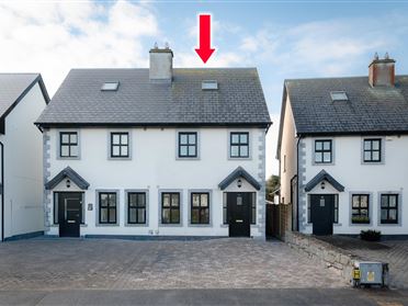 ‘Braemar’, Moneymore East, is a luxurious, light-filled, welcoming home which was constructed in 2004. Located just 4.1km from the village of Oranmore, East of Galway City, it offers 308 sqm. of living space and a separate garage, on half an acre of beautifully landscaped grounds. A gravel driveway leads to the wide entrance doorway with its distinctive fanlight and sidelites. Once over the threshold, the large marble floor tiles, exquisitely hand-crafted staircase and high ceilings, showcase the standard of finish throughout this fabulous home. Either side of the entrance hall are two nicely-proportioned sitting rooms, each having dual aspect. Here, the antique marble fireplaces, solid French Oak floorboards (from Burgundy) and elegant drapes create an atmosphere of warmth, luxury and relaxation…a welcoming retreat at the end of a busy day. Right of the entrance hallway, double doors open from the sitting room into the south-west facing kitchen and dining room. The dining room links seamlessly to the extensively paved patio through full height, glazed patio doors. The beautifully crafted, painted kitchen has granite worktops, an American-style fridge freezer, oil fired Aga cooker, integrated dishwasher and central island unit with movable butcher-block. Off the kitchen there is a boot room, pantry and a generously sized fitted utility with sink unit, electric cooker and hob. A guest WC fits neatly under the stairs. Four double bedrooms…three en-suite, the main bathroom and a shelved linen press, span the entire first floor, with no lesser standard of finish than that evidenced below. All four bedrooms are carpeted throughout with excellent storage closets (sliderobes/walk in wardrobe) and black-out blinds and curtains. The en-suites are fully tiled as is the main bathroom which has a bath and separate electric shower unit. The attic is fully converted and divided into two areas, a home office and recreational area. Each have Velux windows which give an abundance of natural light; electric heating; floored crawl space and built in storage presses. The property is on a group water scheme and septic tank for waste water and is fully security alarmed. This home has an impressive B3 energy rating, qualifying potential purchasers for green mortgage rates. There is oil fired, zoned underfloor central heating on the ground floor and radiators on the first floor. All windows are double glazed, PVC sash windows and all external and internal doors are custom made in solid wood. The garage is fully insulated and dry lined and houses the oil-fired boiler. The oil tank is discreetly hidden behind the garage. Access to Oranmore village and train station and to the M6 and M18 motorways, takes less than eight minutes by car, making the location so very convenient for commuters. This home is built and finished to an exceptionally high standard with no expense spared in the quality of fittings and finishes chosen. Viewing is very highly recommended.