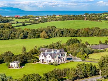 A BEAUTIFULLY RESTORED PERIOD RESIDENCE SET ON IMMACULATE PARKLAND WITH LANDSCAPED GARDENS AND EQUESTRIAN FACILITIES EXTENDING TO APPROX. 6.26 HECTARES (15.5 ACRES). THE HOME COMBINES CLASSIC ELEGANCE WITH MODERN COMFORT, FEATURING BESPOKE INTERIORS, A HANDCRAFTED KITCHEN, AND LUXURIOUS LIVING AREAS THROUGHOUT. SPECIAL FEATURES • Fully restored period residence • Double glazed timber sash windows with working shutters • Bespoke in-frame kitchen with AGA • High-quality joinery and period details • Air-to-water heat pump system • Luxurious bathrooms • Private guest wing with own staircase • Landscaped gardens with specimen trees • Stud-railed paddocks with water supply • Stable yard with 7 stables, tack room & horse walker • CCTV & Alarm system • Antique Brass light switches & sockets throughout DESCRIPTION Located just a short drive from Clane, Co. Kildare, Mount Windsor House is a superbly restored period residence set on elevated, mature grounds with beautifully landscaped gardens, stud-railed paddocks, and full equestrian facilities. This elegant home blends timeless character with modern luxury. Inside, it features bespoke joinery, double glazed timber sash windows with working shutters, a handcrafted kitchen with an AGA, multiple reception rooms, and four spacious bedrooms finished to the highest standard. The property also includes a stable yard with seven stables, a tack room, a six-bay horse walker, a tennis court, a large storage shed, and a self-contained apartment. Meticulous attention to detail is evident throughout, from the formal box hedging and tree-lined driveway to the smart heating system & insulation MOUNT WINDSOR HOUSE Commanding a prime position within North Kildare's lush, countryside, Mount Windsor House is an exceptional period residence, immaculately restored and set within mature parkland setting with pristine gardens, and stud-railed paddocks. Just minutes from Clane and within easy reach of Dublin, this distinguished property offers the scale, craftsmanship, and presence rarely found in country homes, all set against a backdrop of carefully designed gardens. Approaching Mount Windsor House, the sense of arrival is immediate. Tall wrought-iron electric gates open onto a long, formal avenue laid in fine gravel and bordered with granite curbing. The entrance is framed by mature laurel hedging and towering beech trees. The driveway splits with thoughtful precision: to the right, it leads directly to the stable yard; to the left, the main avenue curves elegantly toward the residence. The setting is nothing short of spectacular. The house looks out over Donadea Forest and sits at the centre of a meticulously maintained grounds. Box hedging outlines formal gardens, combined with border shrubs, manicured lawns, and stone patio areas designed to capture both light and views. Upon entry, the original porch is framed with restored quoin stone surround which was stripped back during the renovation, Every window has been expertly had crafted by Timeless Sash Windows, traditional sash units with fully functional shutters that preserve the elegance of the period. Inside, the grand entrance hall features engineered solid oak flooring and a handcrafted staircase. To the left, a reception room is a statement and is finished with bespoke panelling and flawless joinery. Each material and detail has been carefully chosen to enhance the architectural features without overwhelming them. At the rear of the ground floor is a dedicated home office with a lovely hunting scene wallpaper. To the right is an elegant drawing room, a perfect space for entertaining or relaxing, again, complete with period features and tall sash windows. The heart of the home is a bespoke kitchen, crafted to exceptional standards by Karl Cullen Fitted Kitchen. Designed for both everyday living and entertaining on a grand scale, this space features in-frame timber cabinetry, shaker-style doors, and shiplap panelling. The central island anchors the room, and the electric AGA adds both function and focal point. A fully equipped butler's pantry provides additional storage and preparation space, and adjoining this area is a guest WC, utility room, and a boot room that connects the home with the outside of the property. A barn-style sliding door marks the entrance to a separate wing of the home, where a staircase leads to a private upper level. Here, two elegant bedrooms feature bespoke fitted wardrobes and views across the gardens. A beautifully designed bathroom serves this section of the house. There is also a communications room on this floor. Back in the main house, the main staircase rises to a landing that connects two luxurious bedrooms. Both rooms overlook the gardens and parkland beyond, with full-height sash windows framing the landscape like artwork. The main bathroom features a deep claw foot freestanding bath, shower with Sanitan fittings, and a flawless blend of classic and modern materials. French doors from here open onto a balcony positioned above the entrance porch, the perfect vantage point from which to take in the full scope of the property. Throughout the property, every detail reflects a commitment to quality and longevity. The air-to-water heat pump system provides highly efficient heating. The home's insulation has been upgraded to meet exacting modern standards while preserving breathability and comfort. Every detail has been thought of, including the air vents which have been fitted with brushed brass decorative grills, adding to the elegance of this fine home. GROUNDS & EQUESTRIAN FACILITIES To the rear, the gardens have been extended and redesigned with precision. A large, level lawn is bordered by structured buxus hedging and estate park railing, while a storage shed, designed with both practicality and character in mind, designed in a curve shape, it adds a layer of visual interest. Electric points are distributed throughout the garden for lighting, and a paved