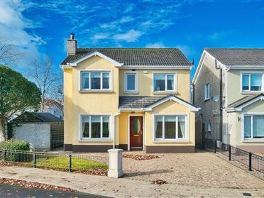 • Immaculate `A` rated four-bedroom residence extending to approx. 3003 sq.ft / 278 sq.m on approx. 11.4 acres • Accessed via electric gates, this residence is set well back from the road and features a sweeping driveway framed by mature, manicured trees and hedges. The drive splits into two, offering separate access to the main residence and land. • Accommodation comprises of entrance hallway, family room, kitchen/living /dining area, utility, guest w.c., four bedrooms, three en-suite and family bathroom • Finished to an excellent standard with bespoke kitchen, handcrafted staircase, premium polished stone tiling, sash windows, rich hardwood floors, elegant architraves and coving - just a few of the many attributes that make this home exceptional • Conveniently located to Robertstown (1.9km), Prosperous (3.7km), Caragh (7.6) providing all essential amenities including shops, schools (primary & secondary), church, pubs and a host of recreational facilities are readily available • Excellent transport links with daily bus services to Dublin from Prosperous and train connections within a short drive to Sallins (12.6km) or Maynooth (19.8km) stations, easy access to the M7/M4 Guide Price 995,000 Type of Transaction Private Treaty Accommodation: Entrance Driveway An electric gate opens onto a sweeping gravel driveway, flanked by a large, meticulously maintained lawn and landscaped gardens. The grounds feature elegant silver birch trees, mature beech hedging, and striking sculpted evergreen trees. A water feature adorned with waterlilies adds to the tranquil setting. The drive divides providing separate access to the land. Entrance Hallway 4.94m x 5.80m Polished stone tiled floor, handcrafted hardwood staircase with integrated lighting centred in the reception area, recessed storage areas, decorative coving, down lights. Control room Heated control room with underfloor heating downstairs, heating zones and central vacuum system. Family Room 5.72m x 5.76m Solid oak floor, high-end bespoke built-in display and TV unit with feature electric fire, shelving & storage, decorative coving, down lights, dual aspect with sash windows, double hard wood and glass doors to hallway and reception area. Bedroom 1 3.82m x 5.57m Solid oak floor, decorative coving, down lights. En-suite 1.73m x 3.00m Fully tiled, double shower enclosure, w.c., w.h.b., fitted mirror. Living Room (5.57m x 4.40m) /Kitchen/dining (7.59m x 5.75m) Open plan layout, solid oak floor, sash windows, feature fireplace centrally positioned with stove, stone hearth and large wood beam mantle, down lights through to split level kitchen and defined dining area. Step up to the kitchen with polished stone tiled floor, fully fitted hand-crafted, soft close shaker style kitchen, glass wall display units, in cabinet & under cabinet lighting, black granite worktops, upstands, double Rangemaster freestanding oven, feature built-in extractor with storage units either side of oven, under-mounted 1.5 bowl stainless steel sink, integrated dishwasher, tall unit with integrated microwave and pull-out drawers, built-in unit housing large American style fridge with overhead storage, feature island with storage, pan drawers, additional round under-mounted sink and defined breakfast bar seating area, large built-in pantry cabinet with pull-out drawers, decorative coving and downlights. Sliding doors to out to a patio area. Utility Room 3.50m x 2.14m Additional fitted kitchen cabinets, stainless steel sink, plumbed for washing machine and dryer, rear door access to rear of property, alarm panel, coving and downlights. Guest W.C. 1.00m x 1.90m Fully tiled, w.c., w.h.b., towel radiator. Landing 3.87m x 6.00m Beautifully handcrafted feature wooden staircase with integrated lighting leading to dormer level. Large open area with solid oak floor and recessed area for seating/relaxing. Bathroom 2.49m x 4.39m Fully tiled, corner jacuzzi bath, w.c., w.h.b., fitted glass shelves, towel radiator, double shower enclosure, electric shower. Bedroom 3 5.20m x 3.32m Solid oak floor, decorative coving, down lights, access to attic. En-suite 2.60m x 1.48m Fully tiled, w.c., w.h.b., shower enclosure, power shower, towel radiator, access to attic, access to walk-in wardrobe (1.59 x 2.30m). Bedroom 2 5.57m x 3.56 Solid oak floor, dormer annex sash window overlooking front, recessed space for wardrobes, down lights. Bedroom 4 6.50m x 5.56m Solid oak floor, feature central wall with recessed space behind for adding wardrobes or drawers. En-suite 2.75m x 1.48m and Walk-in wardrobe Fully tiled, w.c., w.h.b., double shower enclosure, power shower, towel radiator with additional walk-in ward robe with solid oak flooring (0.65m x 1.52m). Garden Beautifully raised granite patio area with ample sitting area and wall and box hedging surround. Feature water pond and rockery area. Manicured lawn front and rear screened by laurel and beech hedging from the agricultural land. Garage 6.00m x 7.30m Block built garage, electric roller doors, semi solid floor, double glazed windows, pedestrian access door. Steps to converted loft area with Velux window (9.00m x 3.44m). Additional Information: Originally five bedroom/easily converted back into five bedrooms Controlled heating zones via app Sash Windows throughout Items Included in sale: Fixtures, fitting and window dressing, double range master, American fridge freezer & microwave Services Calor Gas Septic tank Mains Water BER A3 Viewing By appointment only. Directions: Eircode: W91 N9C3 Contact Information Sales Person Jill Wright 045 832020