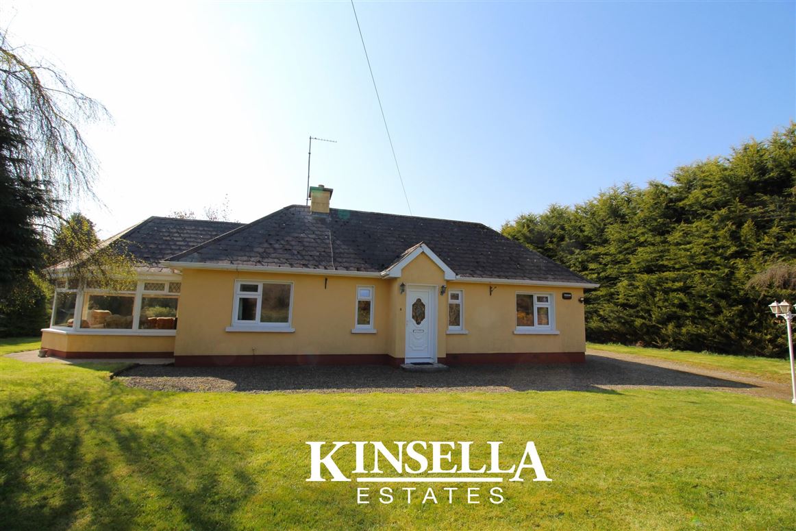 Stunning Three Bedroom Detached Bungalow with additional two bedroom self contained unit Kinsella Estates Gorey & Carnew are delighted to offer this Spacious three bedroom property to the market “Riverdale” at Ballydaniel, Camolin, Co. Wexford. The property is located just 1.2 km’s Camolin, 10.7 km’s Gorey and 16.7 km’s Kilmuckridge. Nestled in the tranquil setting of Ballydaniel, Camolin, Co. Wexford, this charming three bedroom bungalow offers a serene retreat with ample space for family living. Set on a generous plot, the property boasts both a front and rear garden, perfect for enjoying the outdoors in privacy. With a BER rating of F, this home presents an excellent opportunity for those looking to put their own stamp on a property. Upon entering, you are greeted by a bright hallway leading to the heart of the home. The spacious kitchen is fitted with classic wooden cabinetry, providing ample storage and workspace, and enjoys views of the lush garden. Adjacent to the kitchen, the dining area features a cosy stove, creating a warm and inviting atmosphere for family meals. The living room is a highlight, with its large windows and access to the sunroom, offering a perfect spot to relax and soak in the natural light while enjoying views of the garden. The sunroom itself is a delightful space, ideal for unwinding with a book or entertaining guests. The property includes three well-proportioned bedrooms, each offering comfort and tranquillity. The master bedroom is particularly spacious, with built-in wardrobes providing ample storage. The additional bedrooms to the rear of the property are versatile, suitable for use as guest rooms or home offices all with ensuites. The home is serviced by two shower rooms, tastefully tiled and equipped with modern fixtures, ensuring convenience for family living. Outside, there is a self-contained unit with a further two bedrooms and office which have ensuites, the expansive gardens are a gardener's dream, with mature trees and shrubs providing a picturesque backdrop. The driveway offers ample parking, along with a detached garage ensuring convenience for residents and visitors alike. This property is a wonderful opportunity to acquire a family home in a peaceful rural setting, yet within easy reach of local amenities. Viewing is highly recommended to fully appreciate all that this home has to offer. Eir Code: Y21 X7V0 BER: F, 118325034, 449.18kWh House Size: 96.6 Sq, mts (1,040 Sq. ft) Site Size: 0.77 acre (0.31 hectares)
