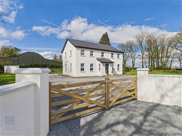 Entrance Hallway 5.97m x 2.12m Solid timber tongue and grooved flooring, double heighted vaulted entrance with Velux over the landing space and timber staircase to landing area. Ample space under staircase for desk or further storage. Hot-press Insulated tank and ample open shelves for storage. Sitting Room 4.30m x 3.99m Tongue and grooved flooring, solid fuel fire, fitted tv console space with open shelves overhead. Ground Floor Bedroom 3/Second Sitting Room 3.99m x 3.29m Carpeted flooring, large window overlooking rear garden. Family Bathroom 2.54mx 1.75m Tiled flooring, bath with electric shower overhead and tile surround, w.h.b and w.c Kitchen/Dining Room 7.73m x 3.47m Tiled flooring throughout, ample dining area space with dual aspect windows overlooking front garden, sliding door leading to south westerly facing patio area and third large window overlooking rear garden. Kitchen filled with light fully fitted with floor and eye level cabinets, stainless steel double drainer sink with tiled splashback, integrated dishwasher, Zanussi built in double oven and four ring electric hob under extractor fan. Utility Room 2.86m x 2.08m Tiled flooring, fully fitted floor and eye level cabinetry, window overlooking side patio, free standing Beko fridge freezer, Hoover washing machine and pedestrian door to rear garden. From Central Hallway, timber staircase leading to: First Floor: Landing Tongue and grooved and Velux overhead. Master Bedroom 4.32m x 3.99m Tongue and grooved flooring, fully fitted wardrobes and open shelves, dormer window overlooking front gardens. Ensuite 2.42m x 1.58m (max) Tongue and grooved flooring, shower with Triton T90 xr overhead w.h.b with tiled splash back with mirror and lighting overhead and w.c. Velux overhead. Bedroom 2 5.39m (max) x 3.45m Tongue and grooved flooring, dormer window overlooking front gardens and hatch to a attic overhead with further storage space on the walls to the eaves. Total Floor Area: c. 129 sq.m / 1,389 sq.ft